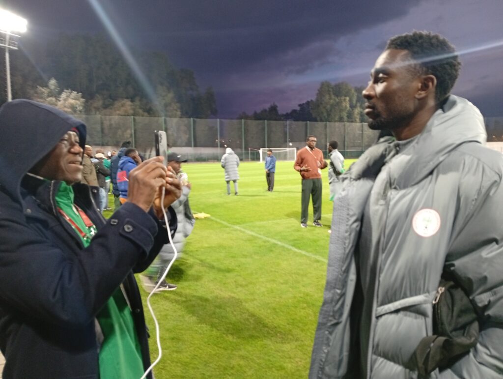 So, projecting the Mr. Chef brand was fully in my mind when I attended the Super Eagles training this evening at the Sardienne Complex in Fez. The team’s media officer, Promise Efoghe, had informed Nigerian journalists in town through a Whatsapp group chat that the training session would kick off at 4.30pm. Ganiyu Yusuf, James Agberebi and I arrived nearly one hour ahead.