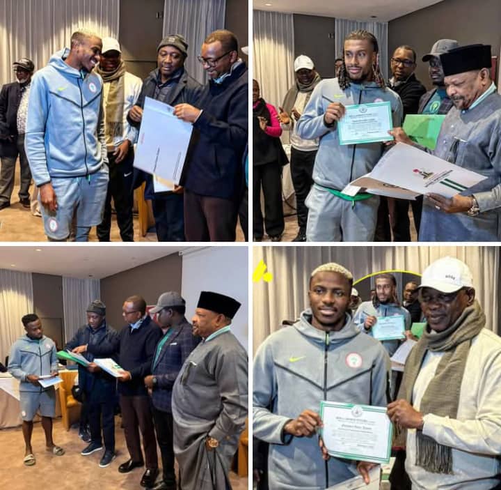 THE Federal Government gave the Super Eagles 2025 AFCON chase a major boost when NSC boss Shehu Dikko led other government functionaries including Nigeria Football Federation President, Alhaji Ibrahim Gusau, to present certificates of National Honours and documents for houses in Lagos and Abuja in fulfilment of a promise made to the players after their runner-up finish at the 2023 AFCON in Ivory Coast.