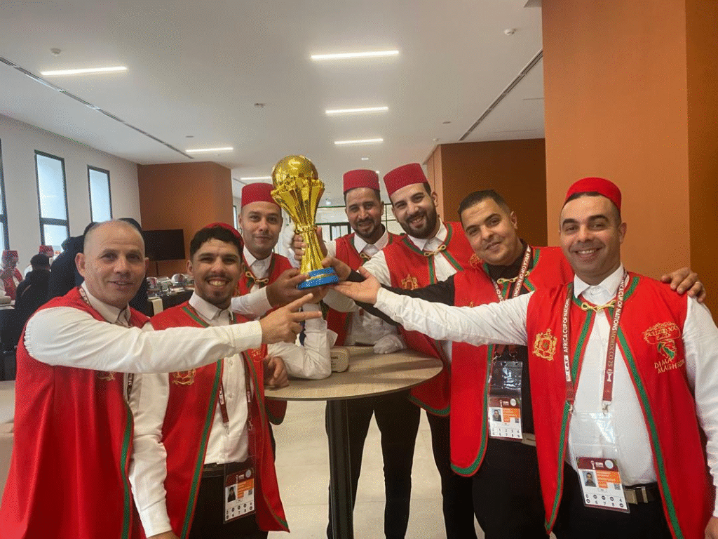 *COMPLETE SPORTS photographer Ganiyu Yusuf came up with a brilliant idea for me to do a short video and photo shoot with a team of chefs that welcomed us to the media center at the Fez Stadium before Nigeria’s game. Decked in traditional Moroccan outfits of red waistcoats on white shirts with red caps to match, the chefs lined up happily to take the photo shoot and record the short video, powered by my sponsors, Mr.ChefNigeria.