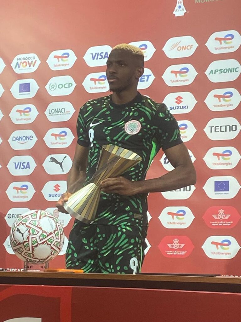 *I WAS highly impressed with Victor Osimhen’s conduct at the post-match press conference following his selection as the Man of the Match against Algeria. First, he dedicated the award to his colleagues for what he called an “impressive team performance against Algeria.” And when he was asked if he had his eyes on Nigeria’s goal scoring record having scored four so far in this AFCON, his response was both respectful and matured.