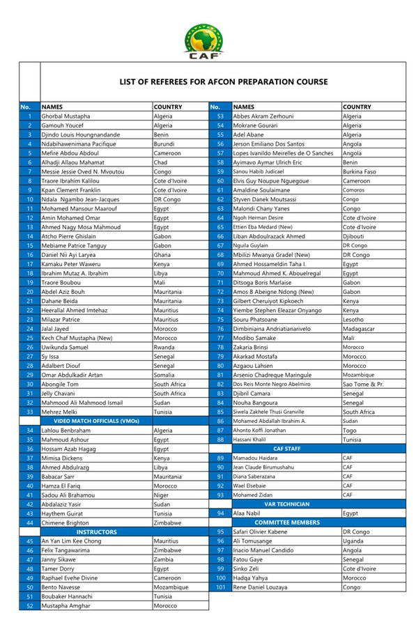 The Confederation of African Football (CAF) has released the list of referees that will officiate at this year’s Africa Cup of Nations in Morocco, with no Nigerian official involved.